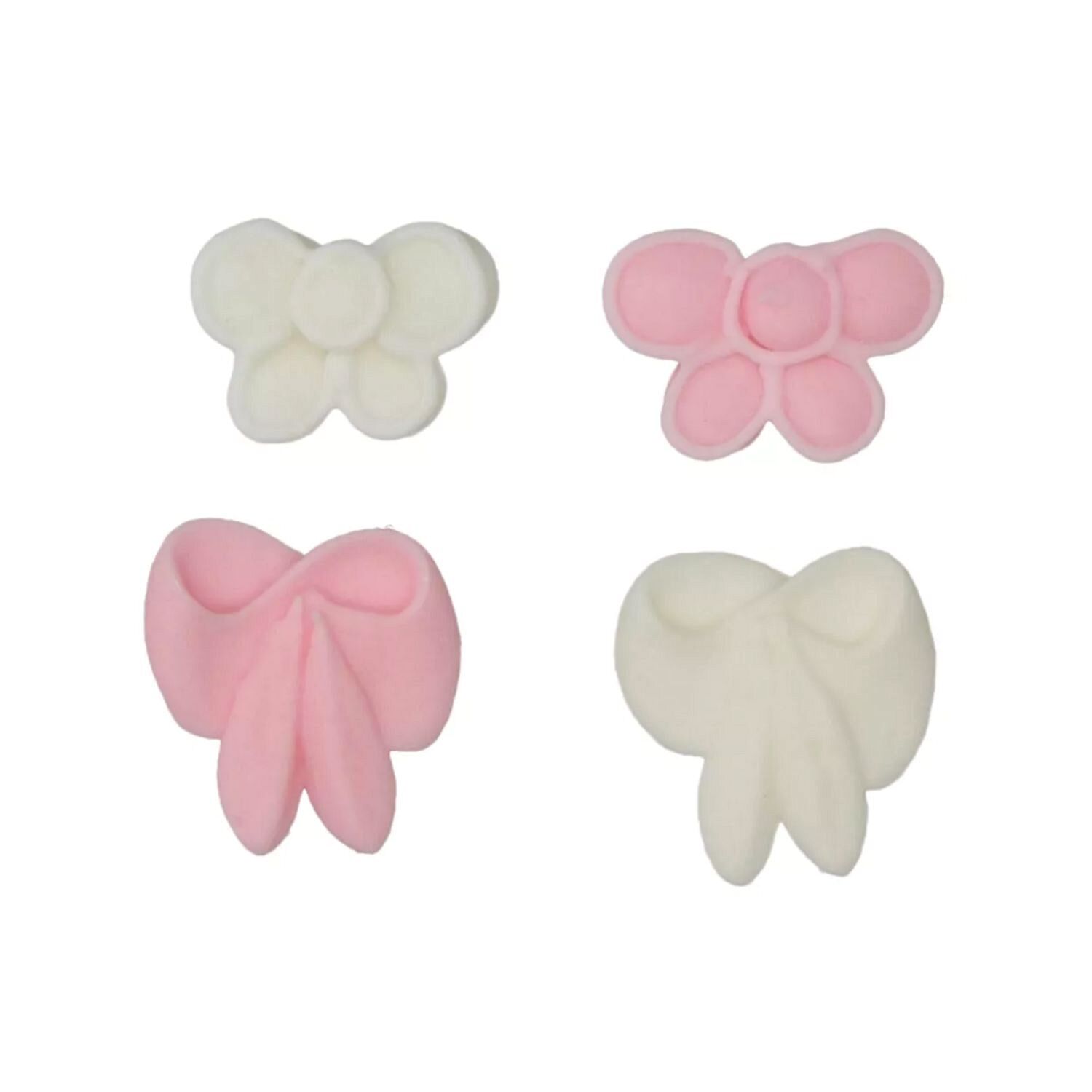 Transforma tus dulces en obras de arte con estos 8 lazos decorativos de azúcar FunCakes, en delicados tonos rosa y blanco.