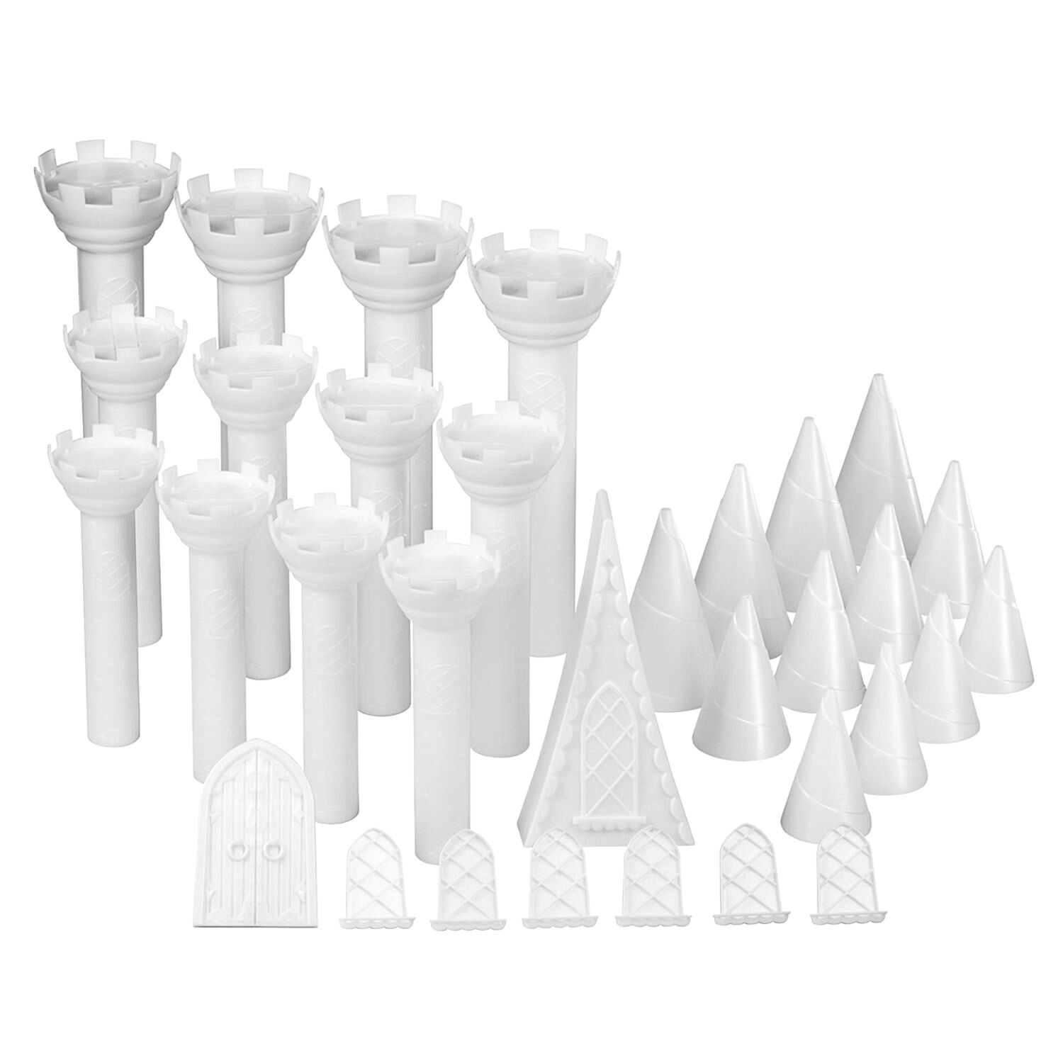 Transforma tus tartas de varios pisos en mágicos castillos con este encantador set decorativo de 32 piezas.