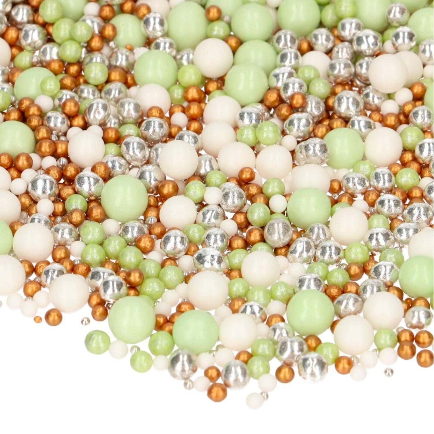 Las perlas de azúcar comestible de Funcakes son suaves y esponjosas y están disponibles en blanco, verde, plata y bronce brillante. Perfectas para bautizos, comuniones, baby showers y mucho más.