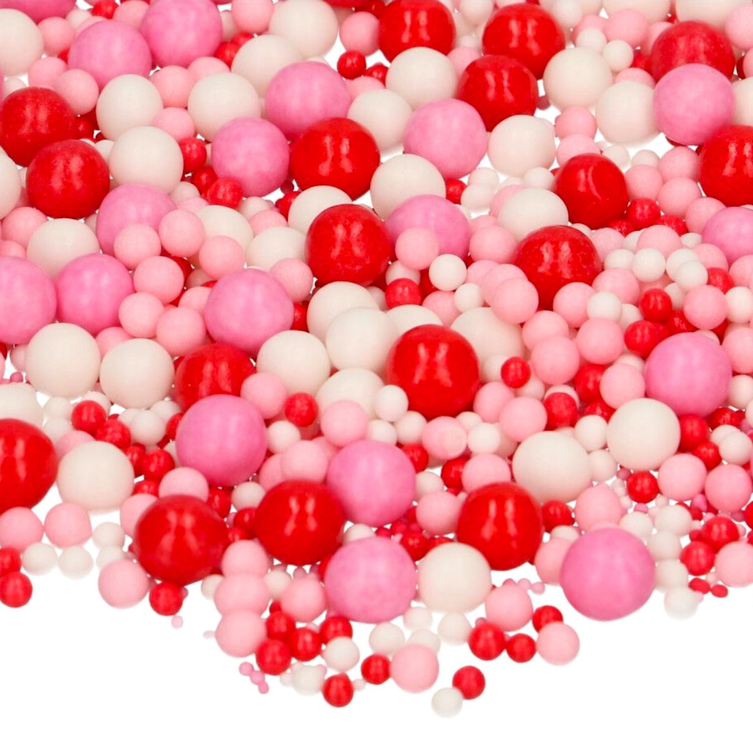Perlas de azúcar comestibles Funcakes, son suaves y blandas, de color blanco, rosa y rojo. Perfectas para San Valentín o el día de la Madre.