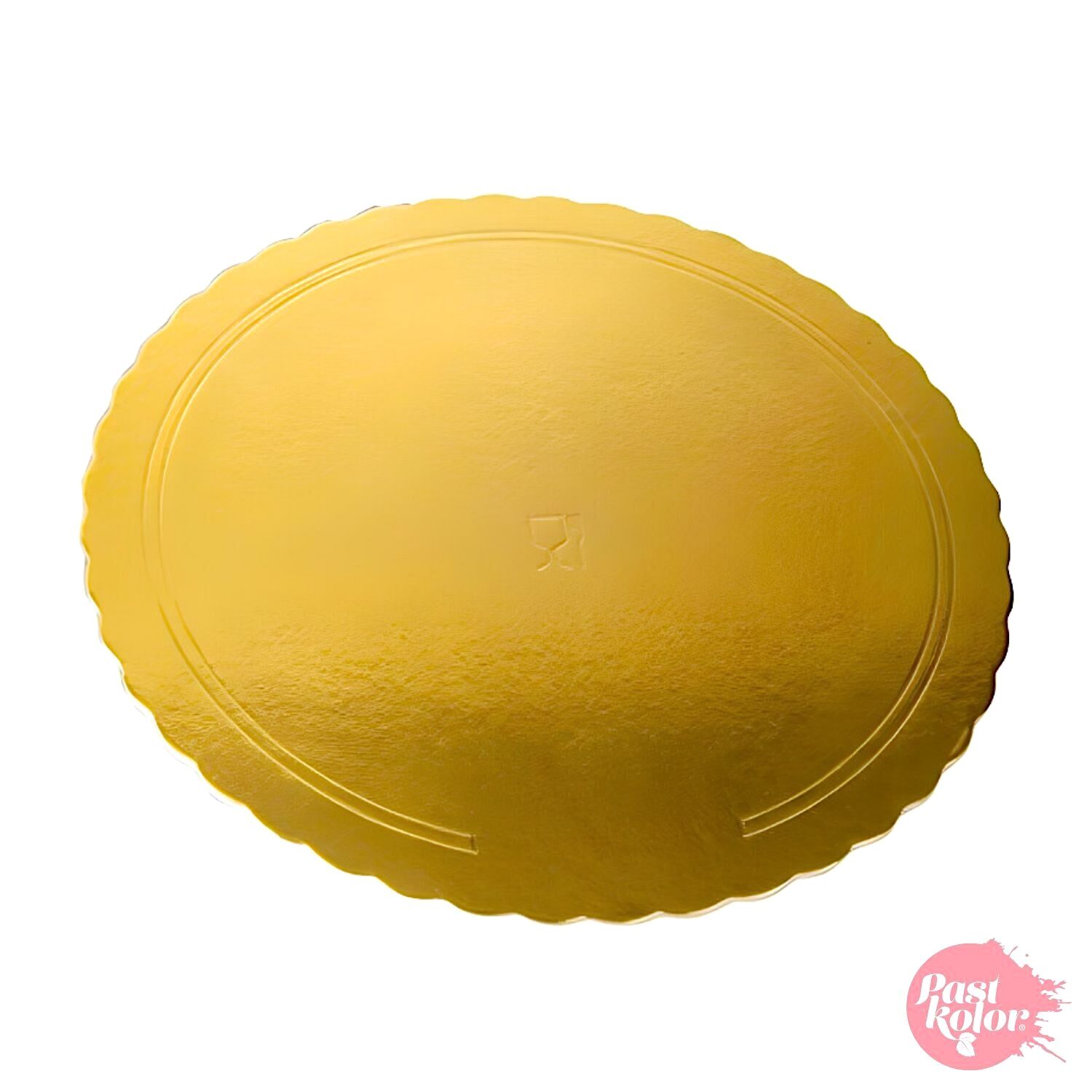 La base es también de cartón resistente de calidad profesional alimentaria, redonda con bordes ondulados y color dorado brillante, perfecta para nuestras elaboraciones por su gran rigidez.