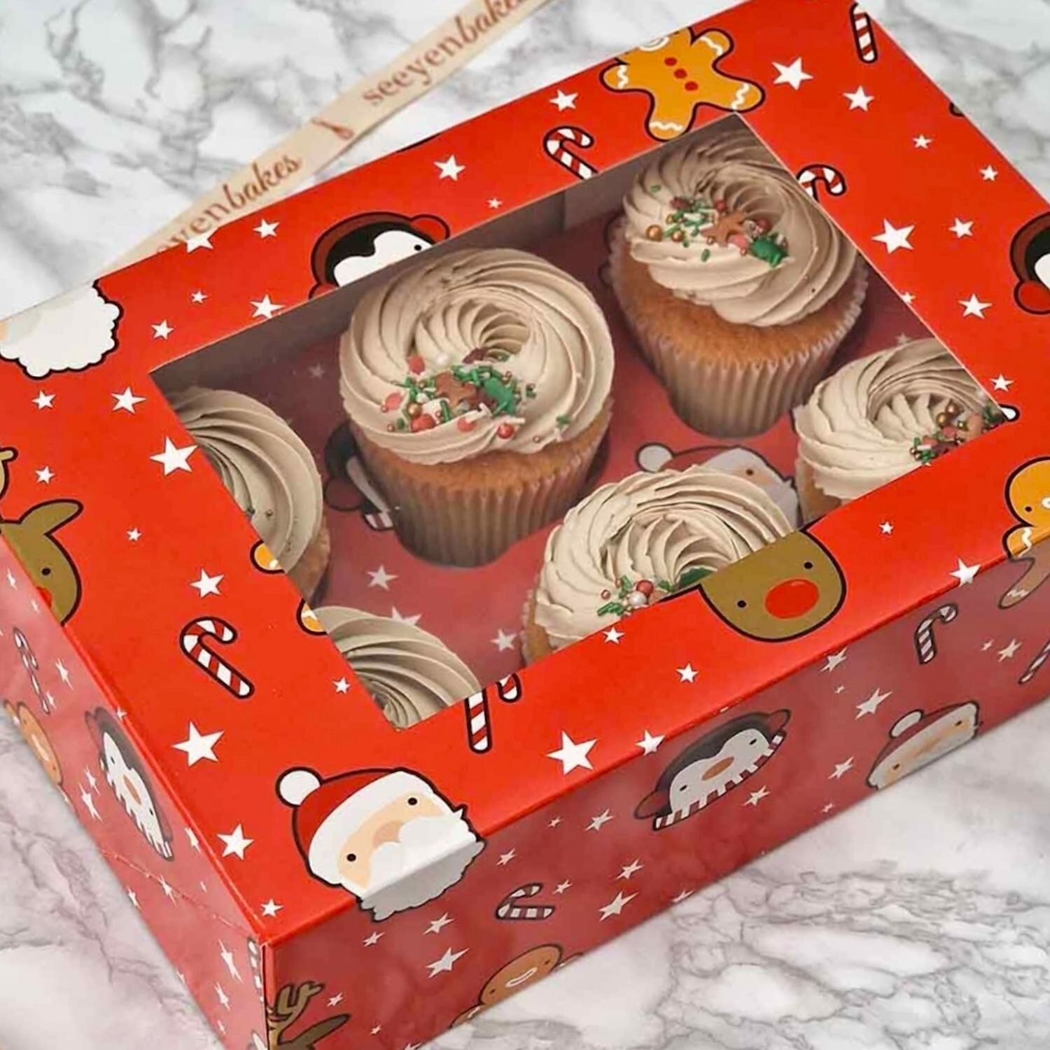 Con un fantástico y divertido diseño de personajes de invierno, esta caja para cupcakes es perfecta para exhibir tus dulces navideños. Su diseño práctico y versátil facilita el transporte y la presentación de tus creaciones.