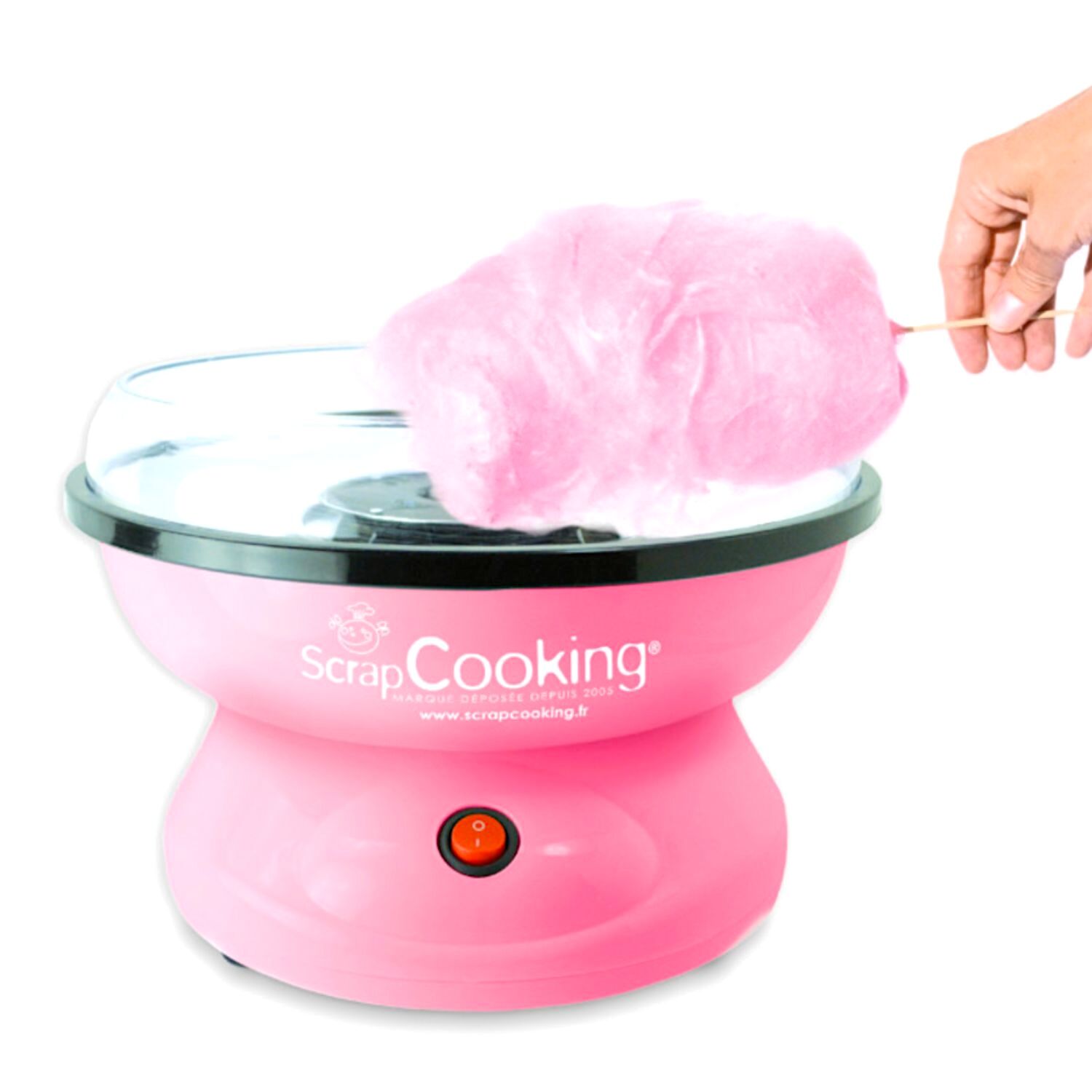 El set incluye: 1 bote de algodón de azúcar color rosa Pastkolor (1 kg) + 60 palitos de madera + máquina de algodón de azucar Scrapcooking (1 máquina + instrucciones + 1 cuchara medidora + 6 palitos de madera reutilizables + 100 g de algodón de azúcar rosa para hacer hasta 12 piezas de algodón).