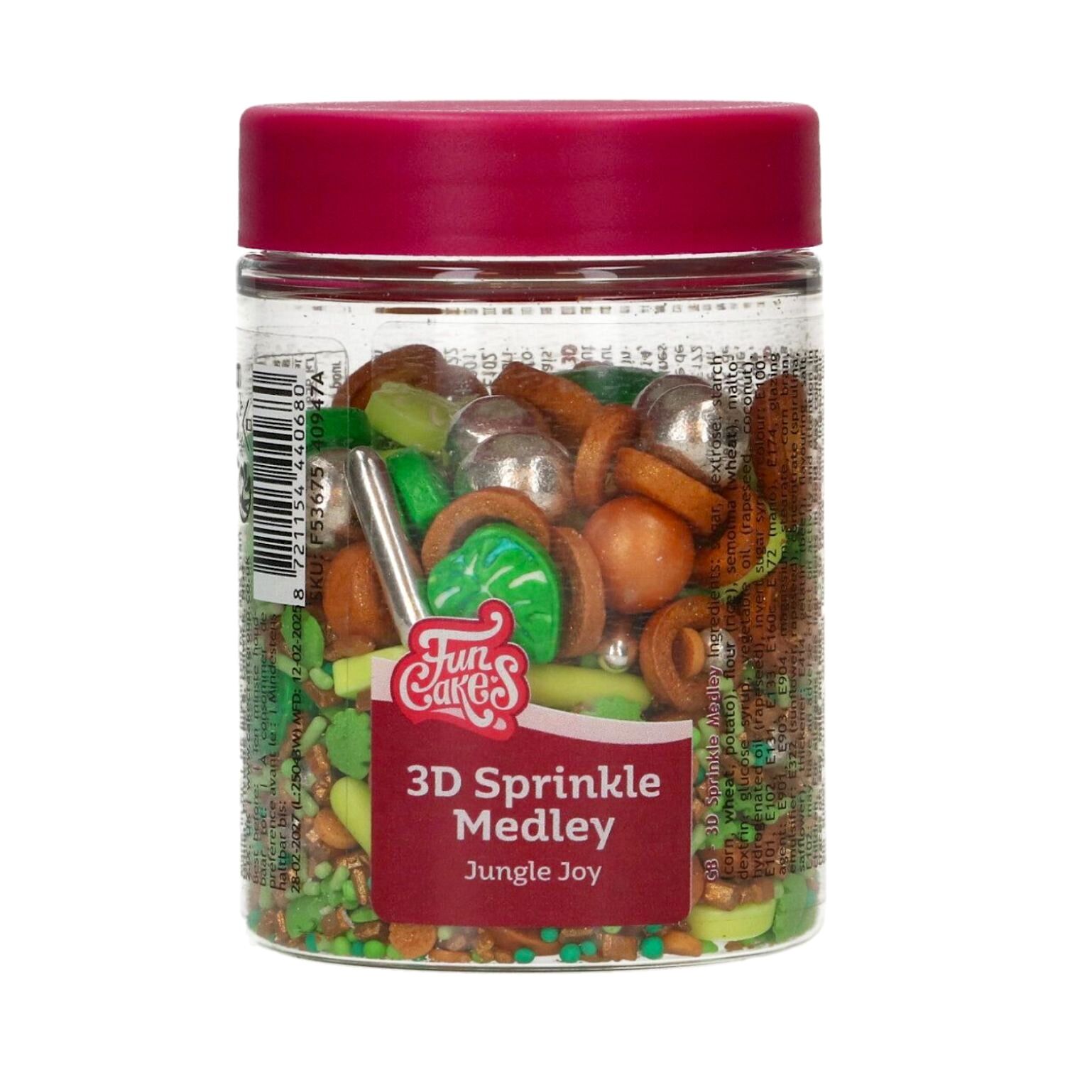 La mezcla de decoraciones incluye figuras en 3D (hojas y aros), bolas, perlas, nonpareils, fichas planas, palitos de azúcar pequeños y XL.
