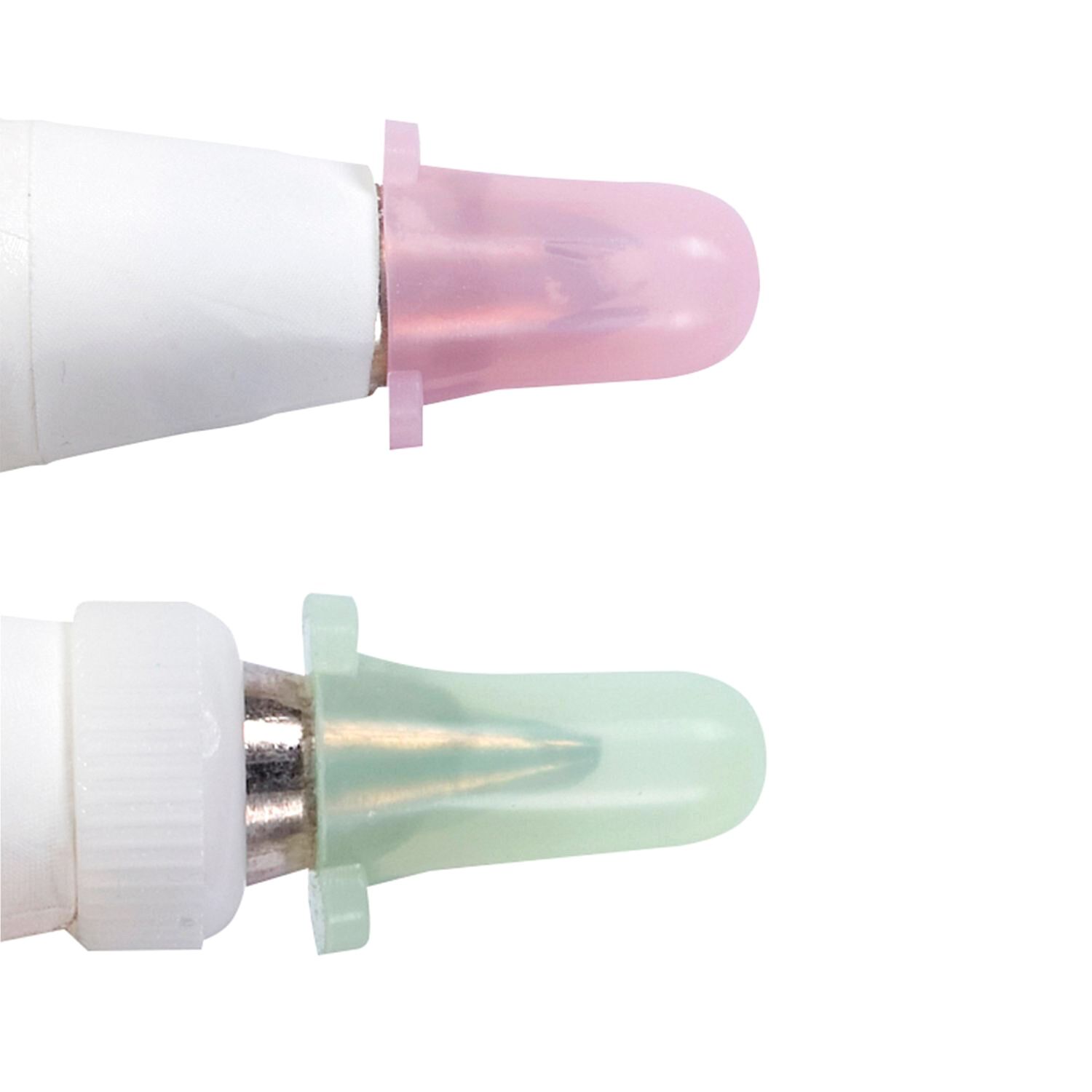 El set incluye 2 fundas grandes y 4 estándar, disponibles en colores verde claro y rosa, diseñadas para ajustarse cómodamente a todo tipo de boquillas y puntas decorativas.