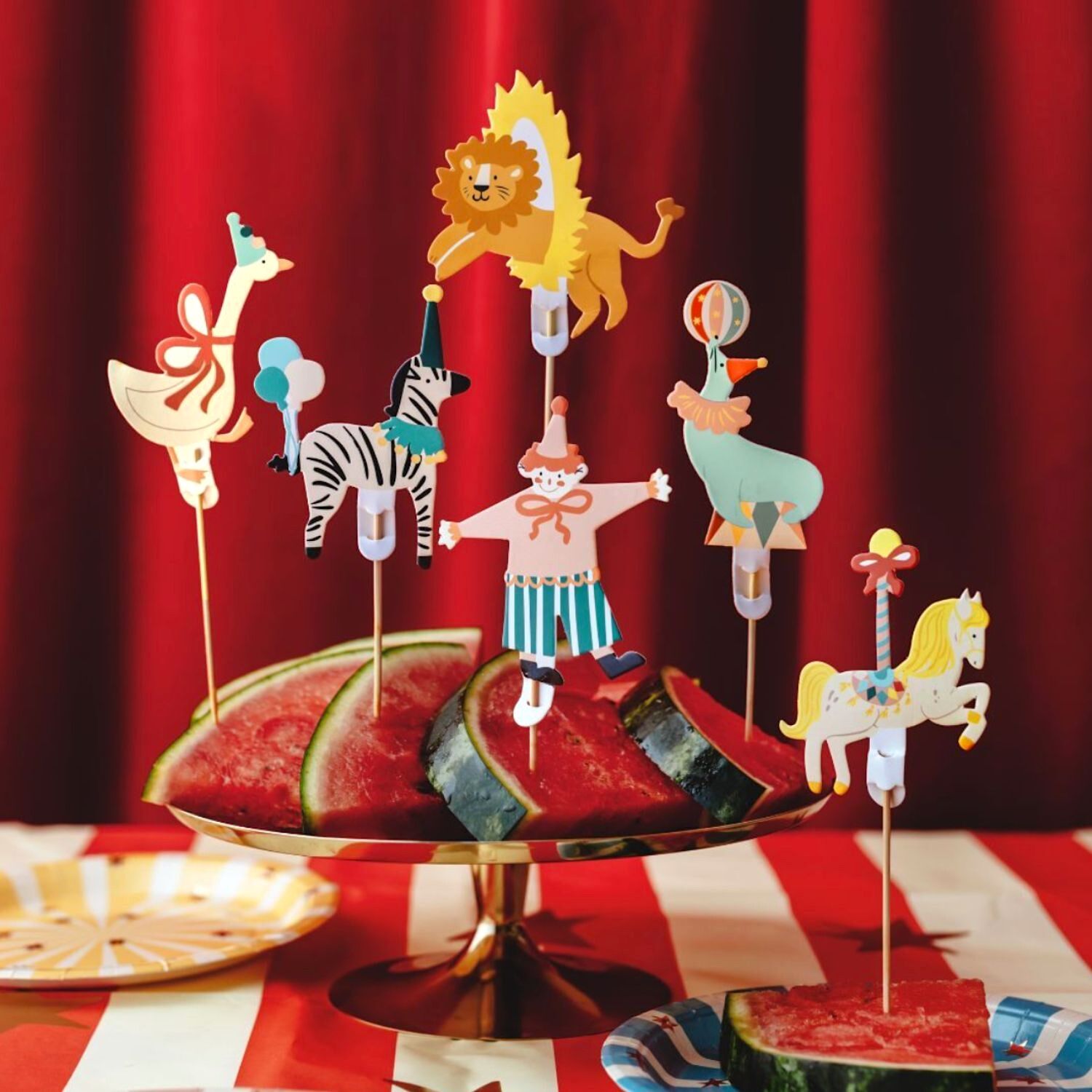 Incluye 6 toppers para cupcakes de PartyDeco, con bonito y colorido diseño perfecto para nuestras fiestas con temática de circo.